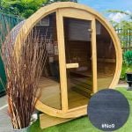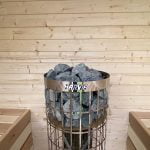 Electric Harvia 6 kw heater and heat resistant plate, drain trap, ventilation holes,